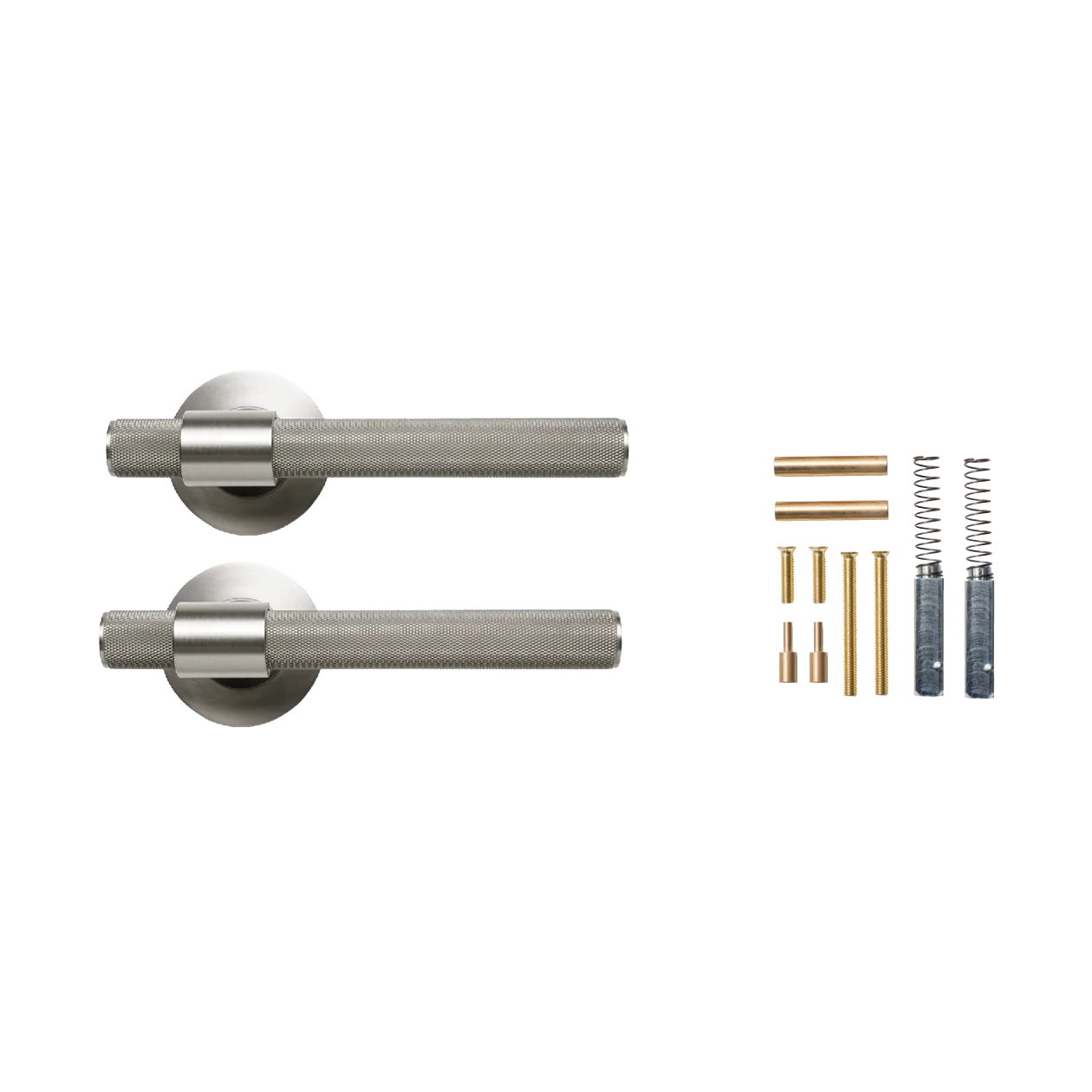 Momo Belgravia Solid Brass Knurled Lever Handle Set in Dull Brushed Nickel